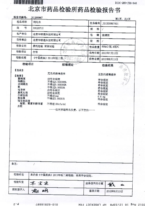北京華聯(lián)通科技有限公司通過GMP驗證